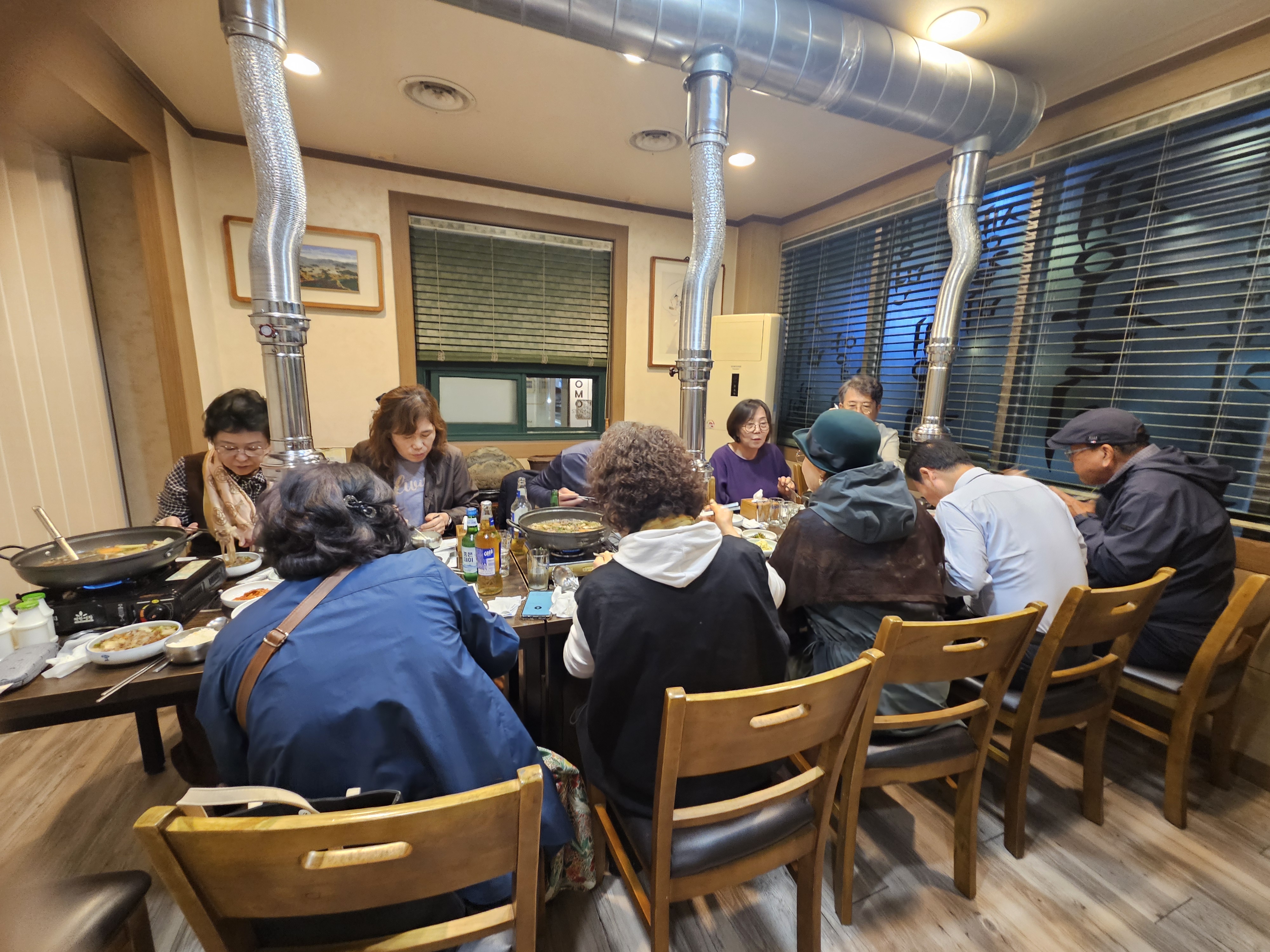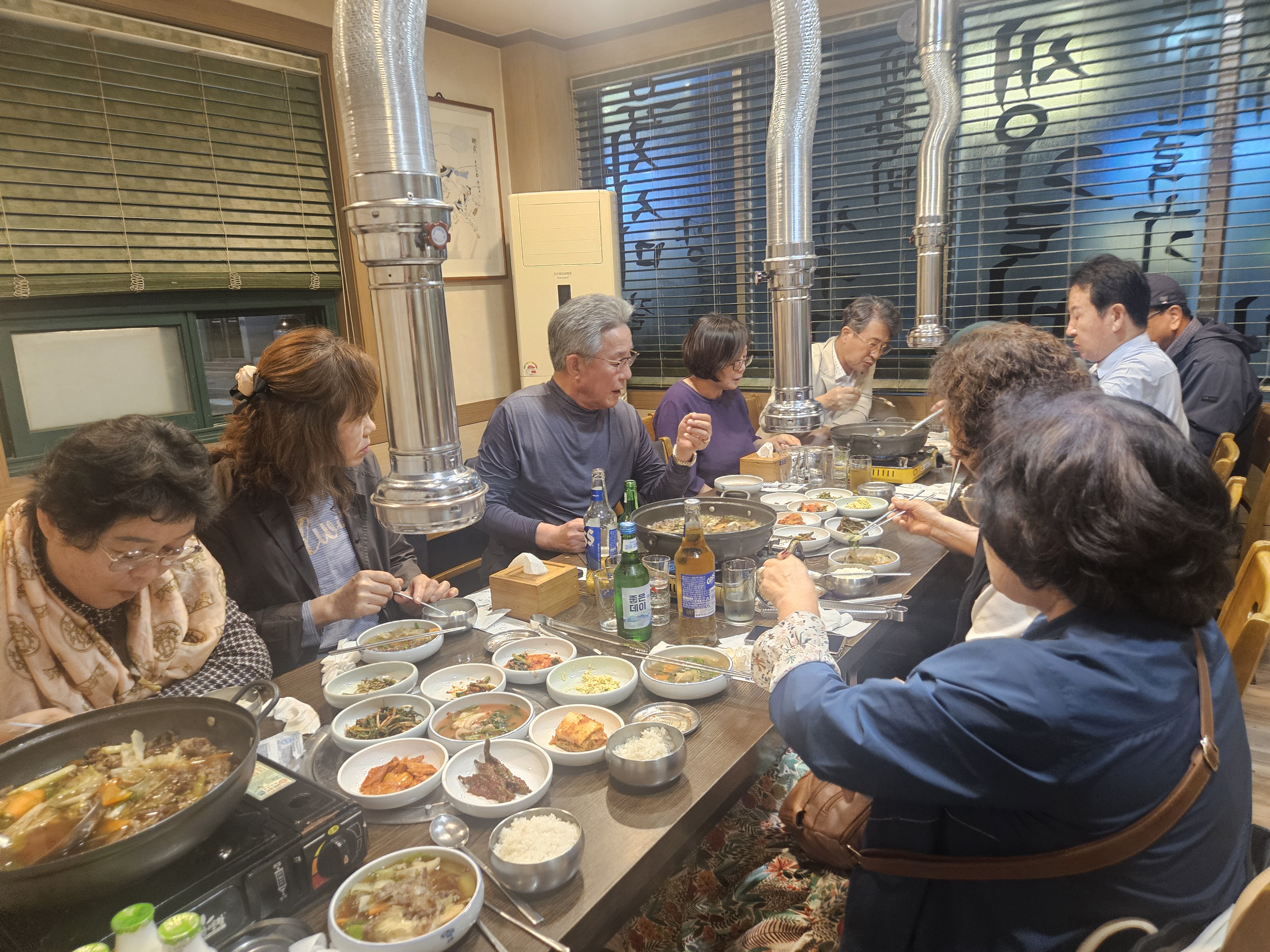 내가 '양미경 수필교실'에서 6번째로 신인상을 수상했다. 당선 소감과 당선 작품인 '북극성이 비추는 길 따라' 낭송이 있었고 마치고는 전원 '한우정'으로 이동해서 저녁 식사를 대접했다.