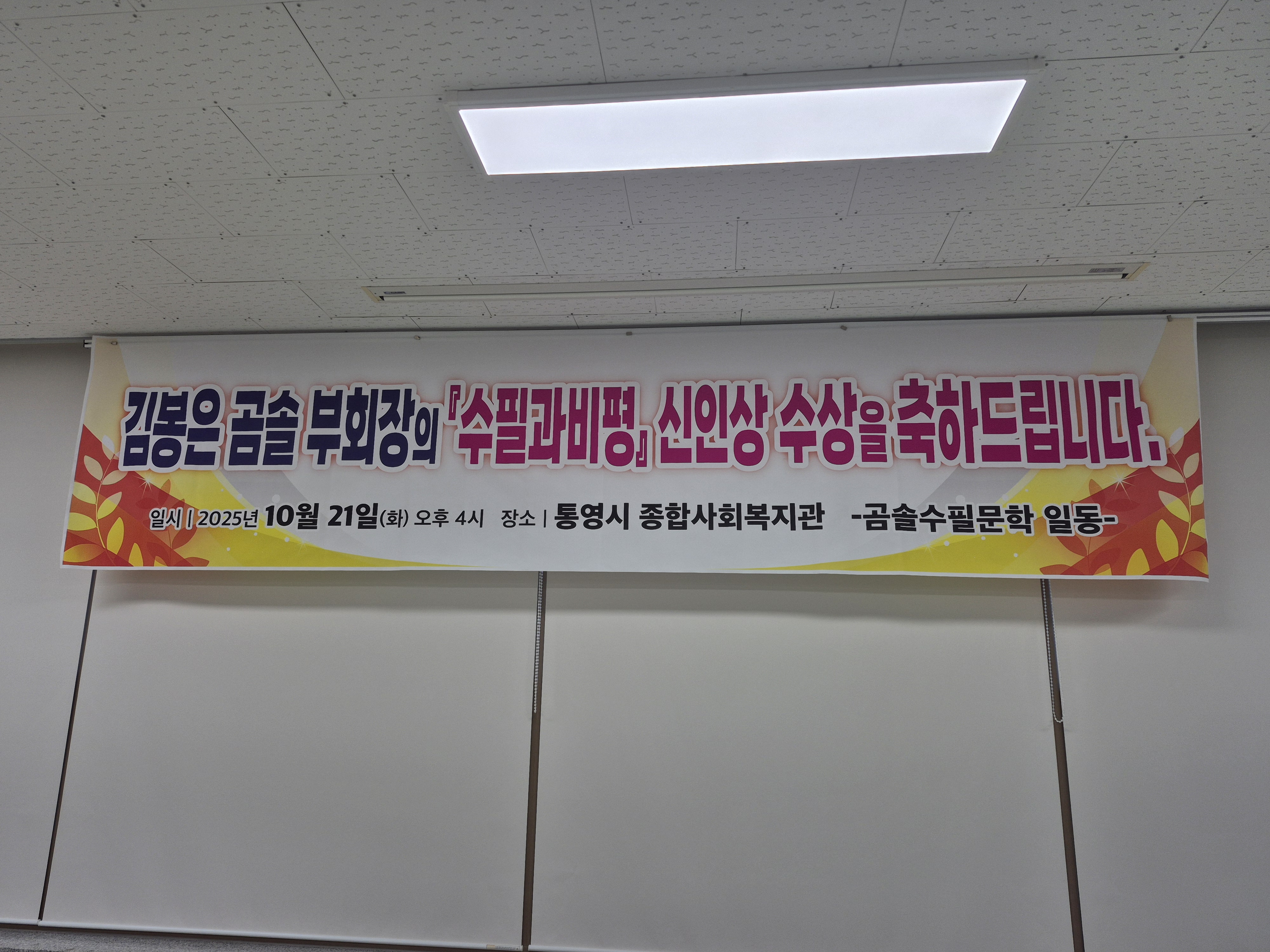 마음 편하게 충무시립도서관에 가서 곰솔수필문학회 신인상 수상 축하행사를 할 수 있어서 행복한 저녁시간을 보냈다.