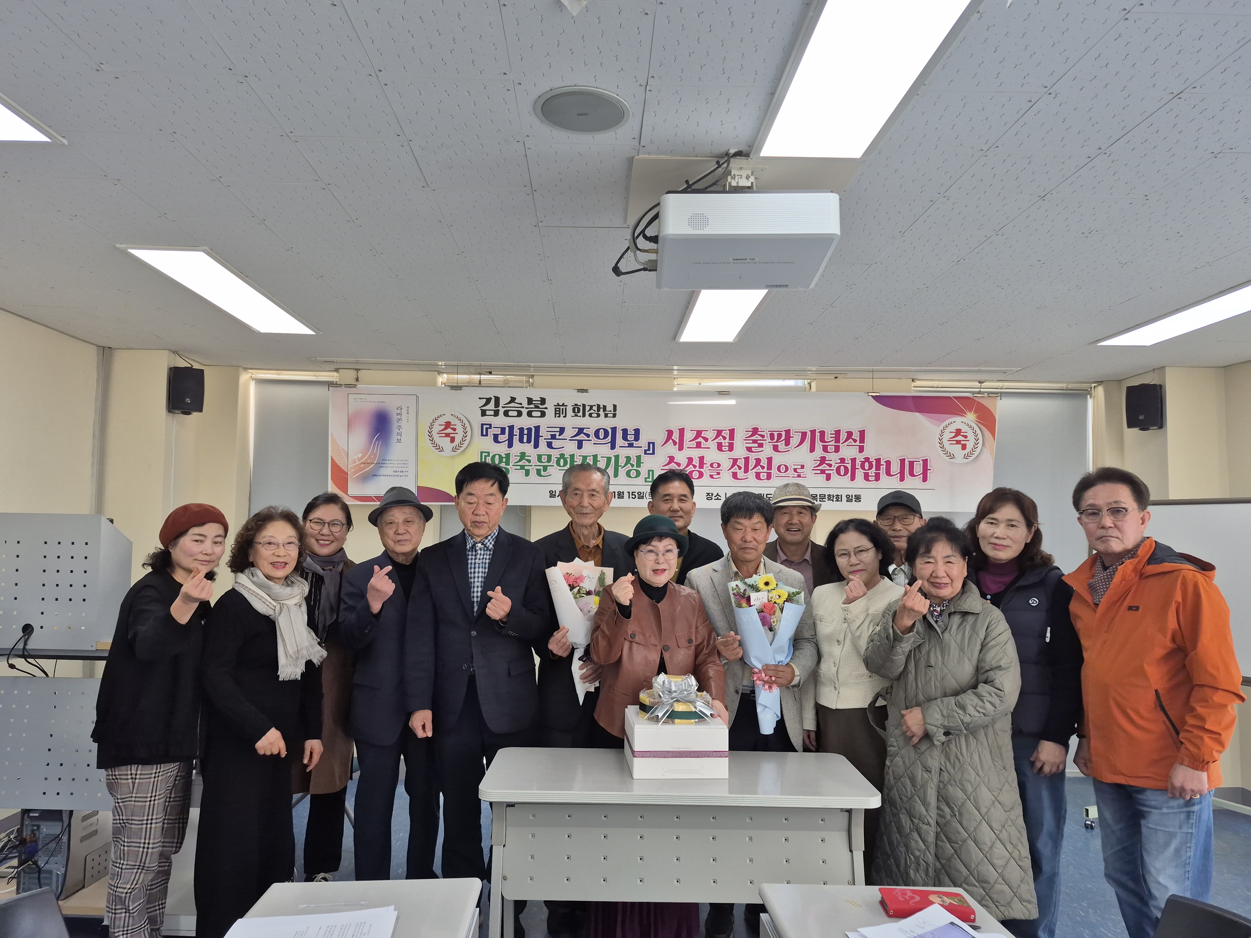 김승봉 전 회장의 시조집 출판 기념과 영축문학상 수상 축하 행사가 있었고, 한우정에서 만찬이 있었으나 전병일 시의원의 차녀 결혼 피로연이 해피데이에서 있어서 참석을 이유로 만찬에 불참하고 갔으나 피로연에 아는 사람이 없어 식권을 받았다가 반환하고 나와서 k에게 전화를 했더니 거북시장 내 할매 영양탕으로 가서 합류했다.