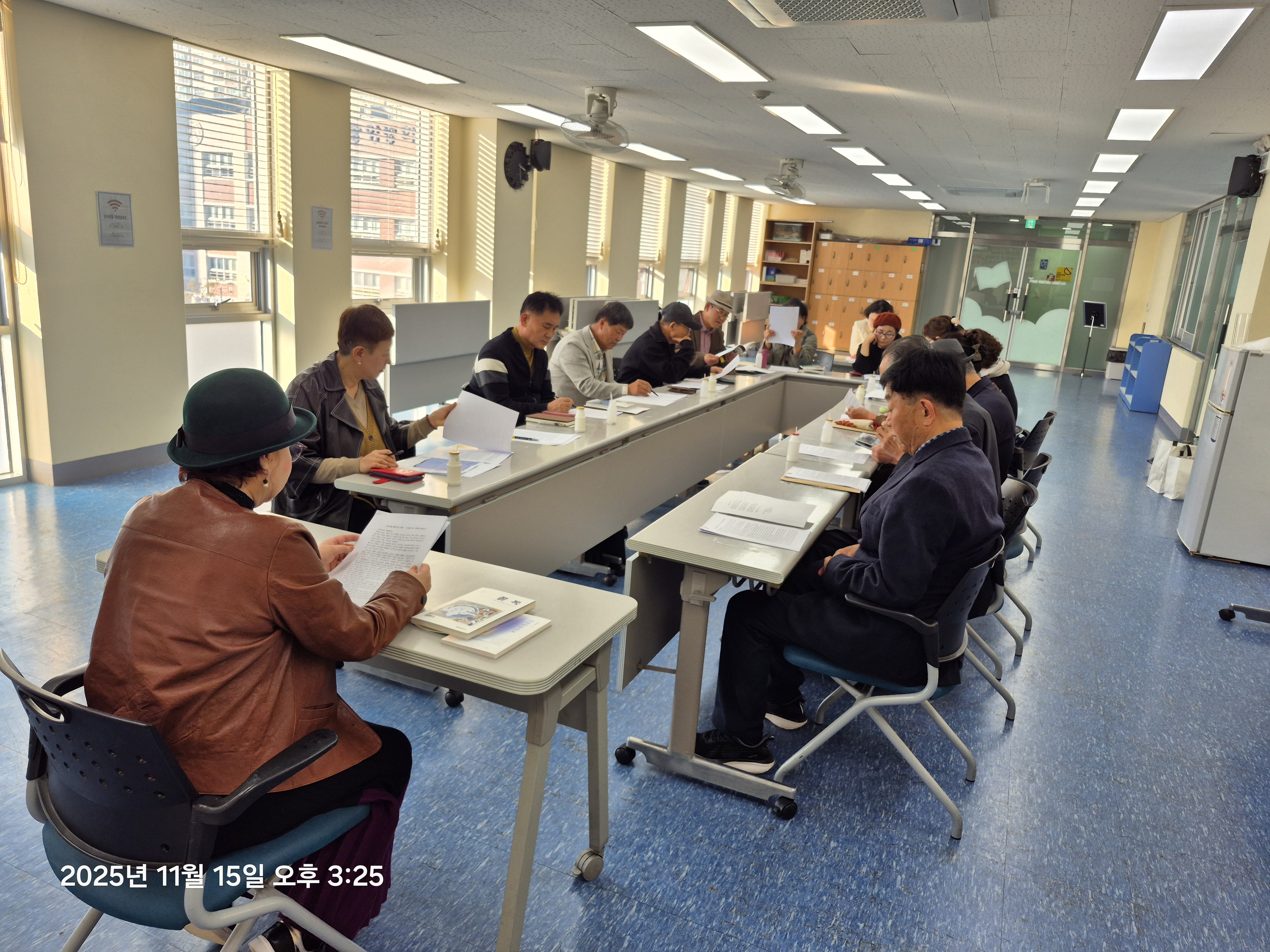 15:00경 통영시립도서관 3층에 물목문학회 월회에 있었다.