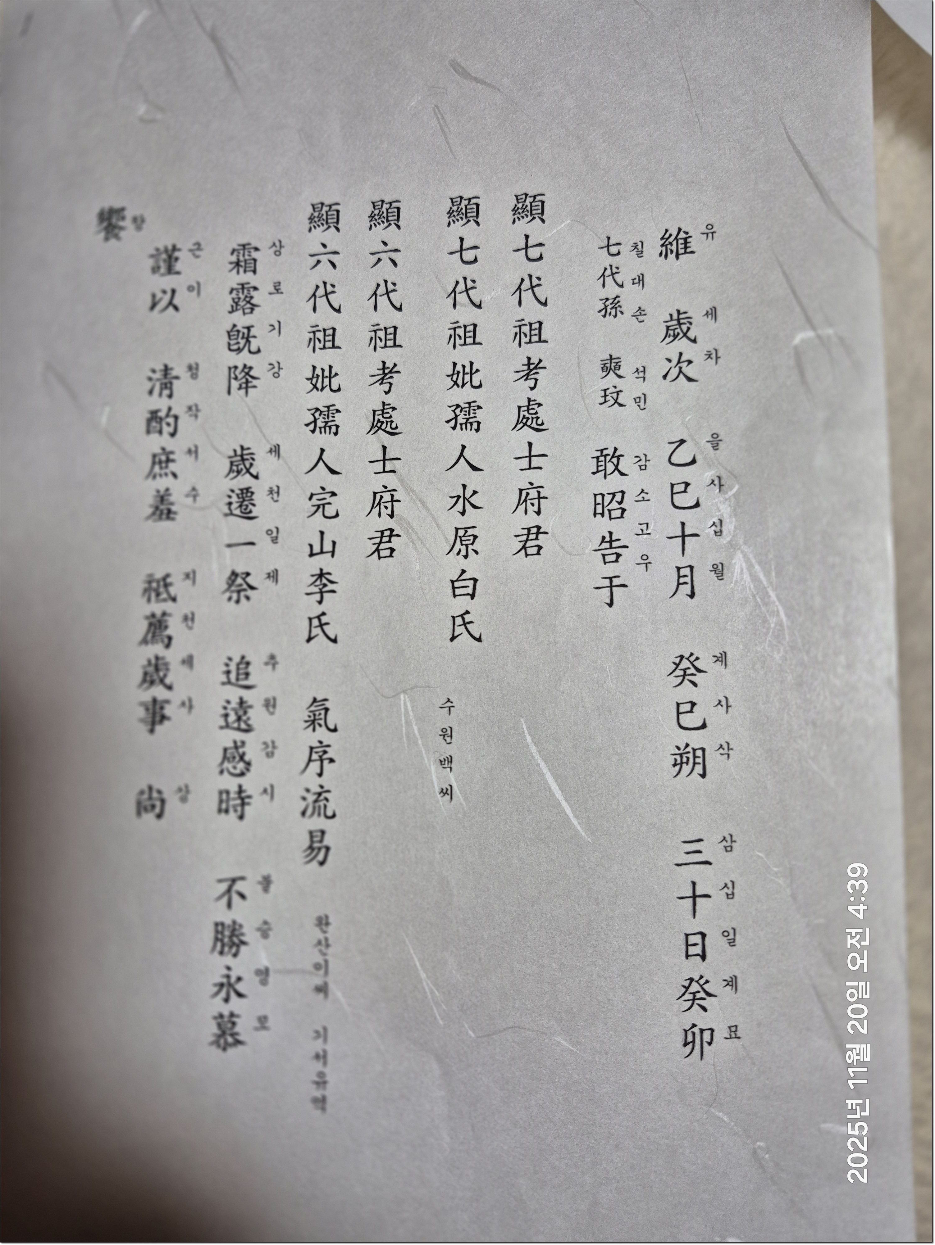 ▣ 을사년 김해김씨 삼현파 64세손 현연공 후손 시사 축문