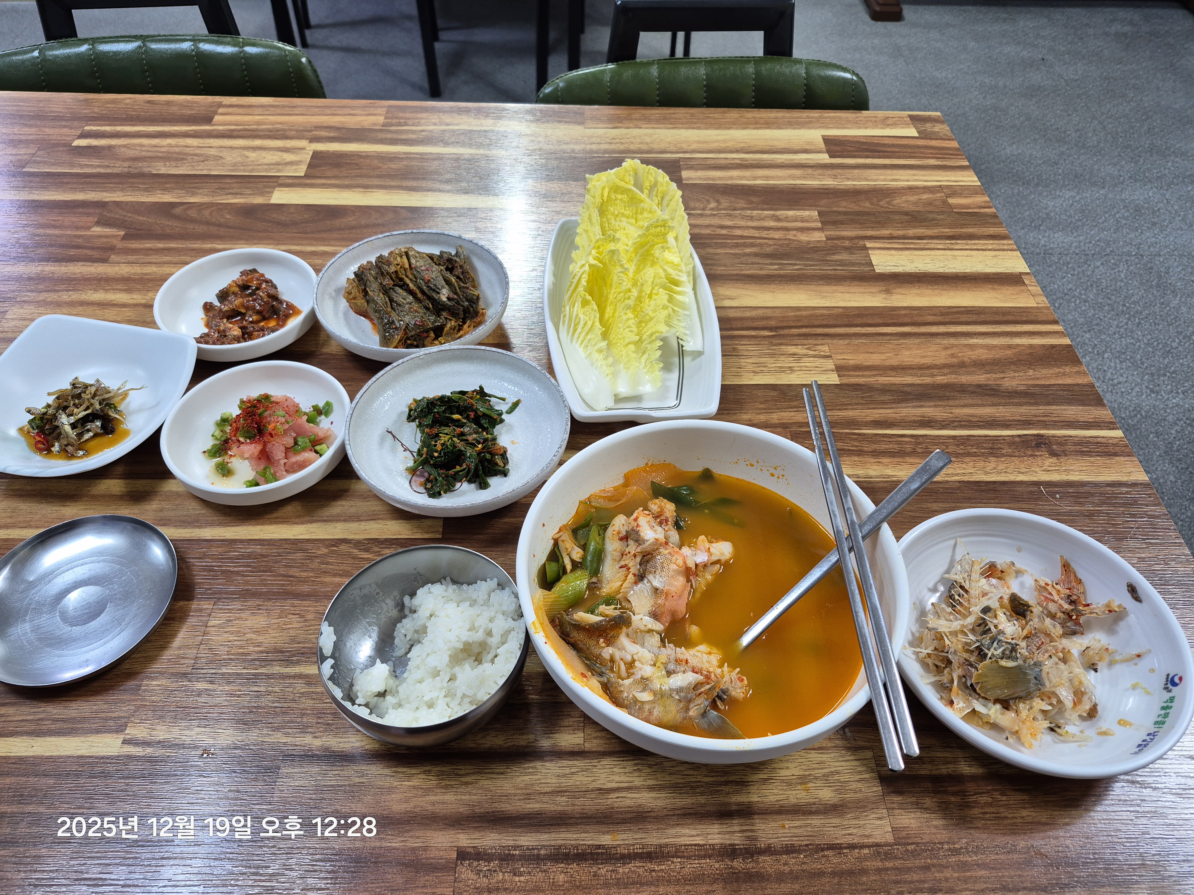 점심 시간에 혼자서 성포횟집에 가서 삼뱅이 매운탕을 먹었다. 15,000원에 맛있는 점심을 먹었다.