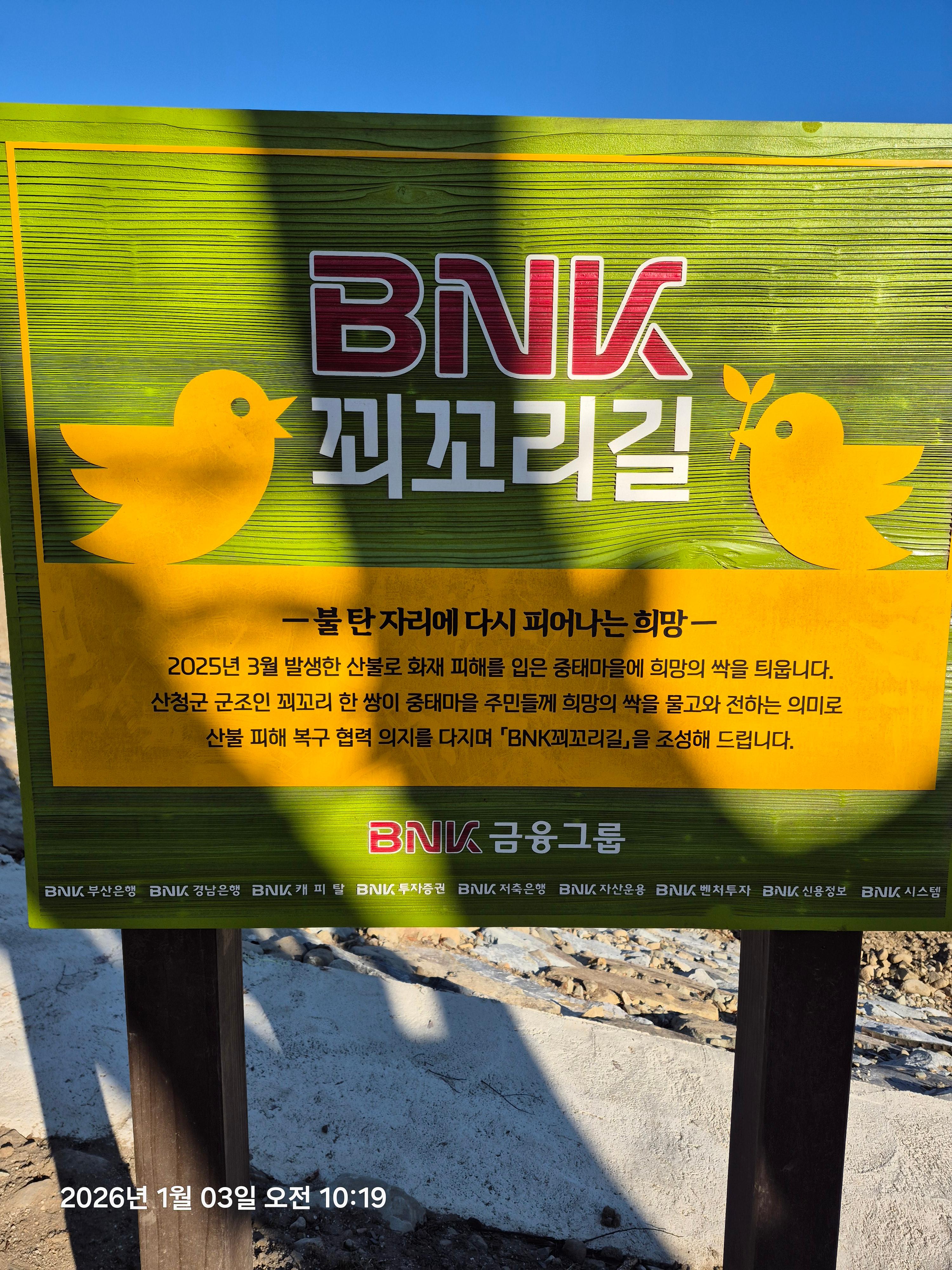 2025.3.21 오후 3시 30분경 시천면 신천리에서 산불 발생하여 중태마을로 넘어와서 12일간 진행됐었다고 한다.